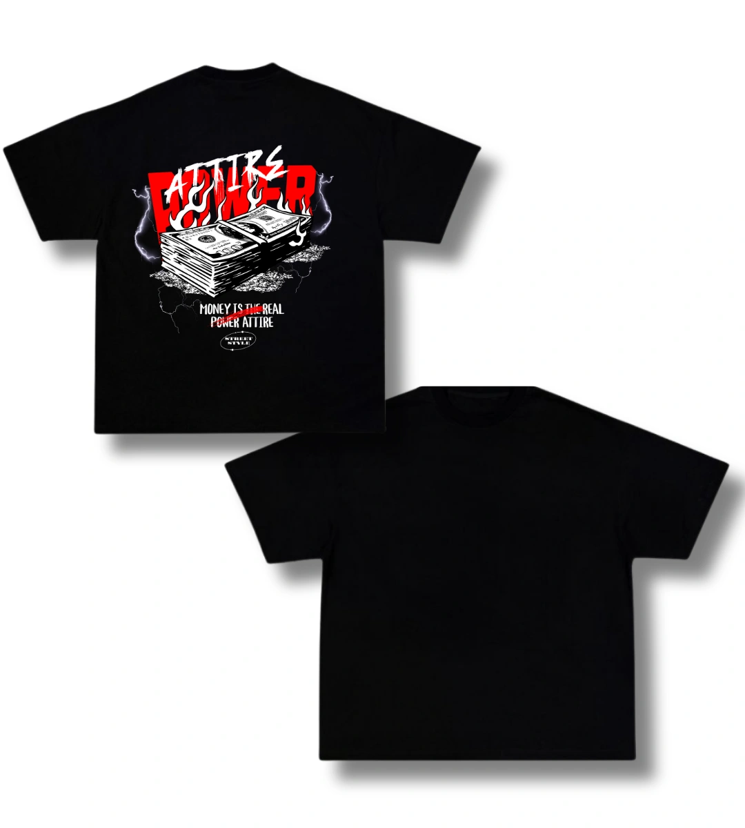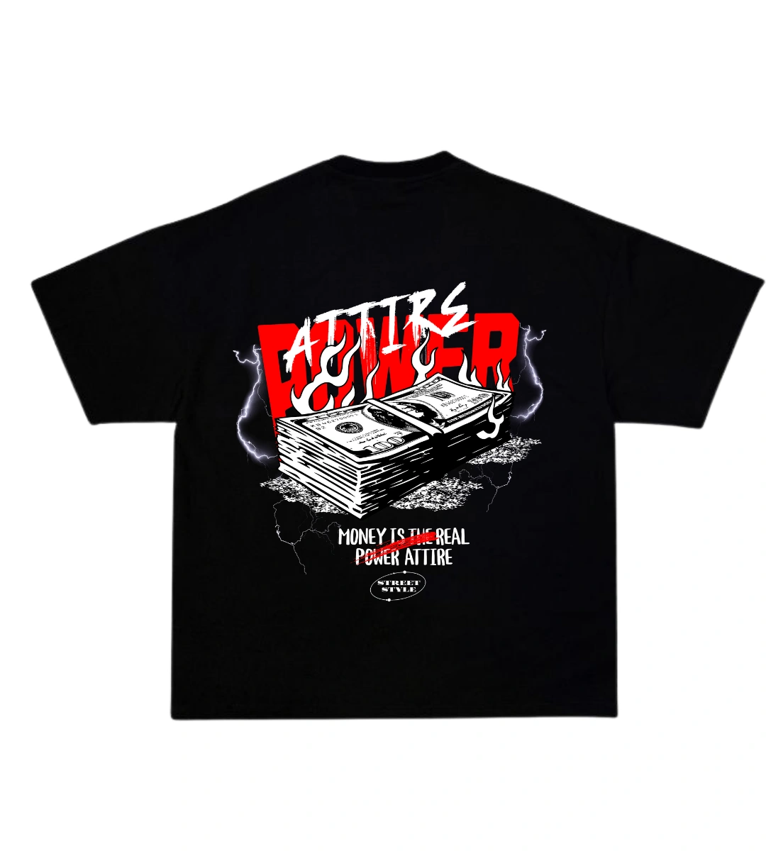 Boxy Fit Attire Power Money – Negro