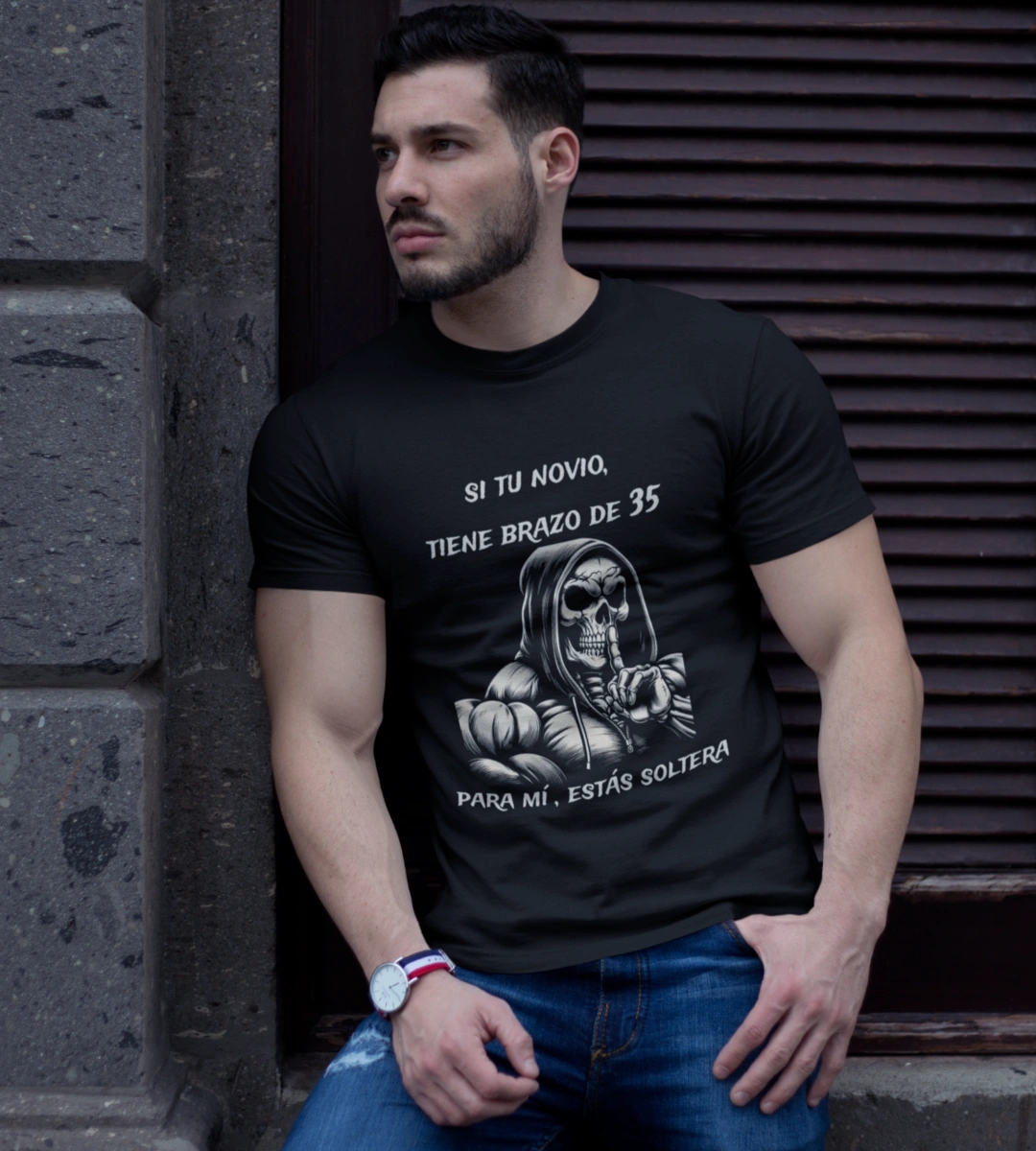 Playera Si tu novio tiene brazo de 35 para mí estás soltera